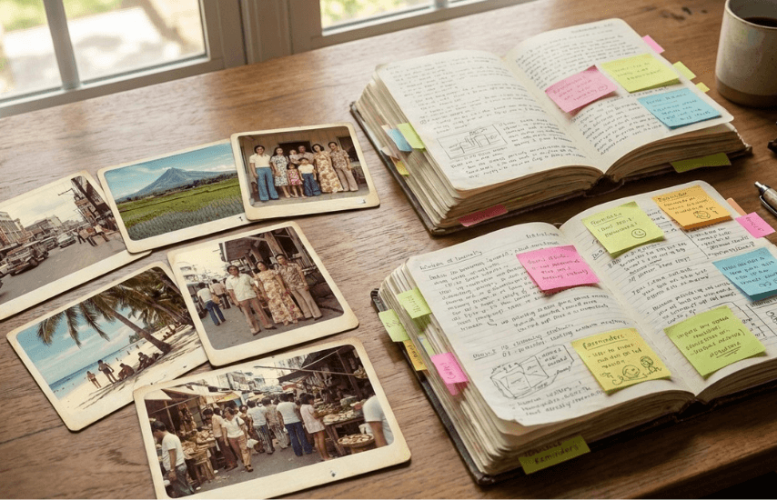 Pages filled with fragments: meals, memories, half-finished thoughts.