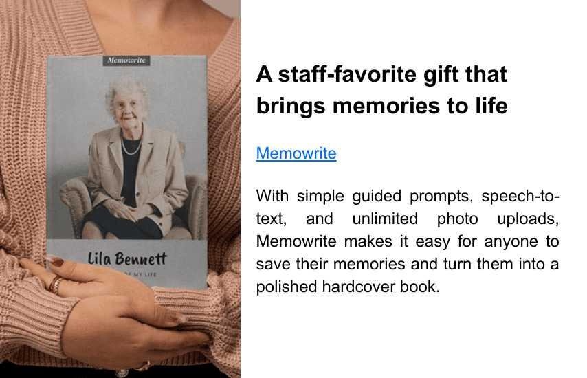Memowrite feels like the kind of gift that would help her put her memories somewhere permanent.